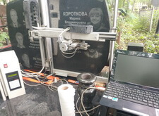 Приносим на место захоронения всё необходимое оборудование: гравировальный станок, блок управления и ноутбук, к которому подключается прибор. Переходим к гравировке. Сначала мы наносим надпись, затем переходим к портрету.