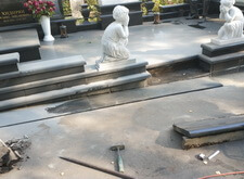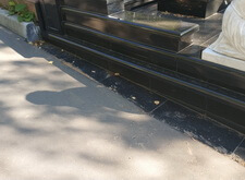 В ходе работ возникло небольшое недопонимание между нами и администрацией кладбища. Нас попросили убрать выступающую на проезжую часть площадь прилежащей территории. Конфликт был урегулирован, мы немного подрезали гранит и положили в образовавшуюся нишу холодный асфальт.